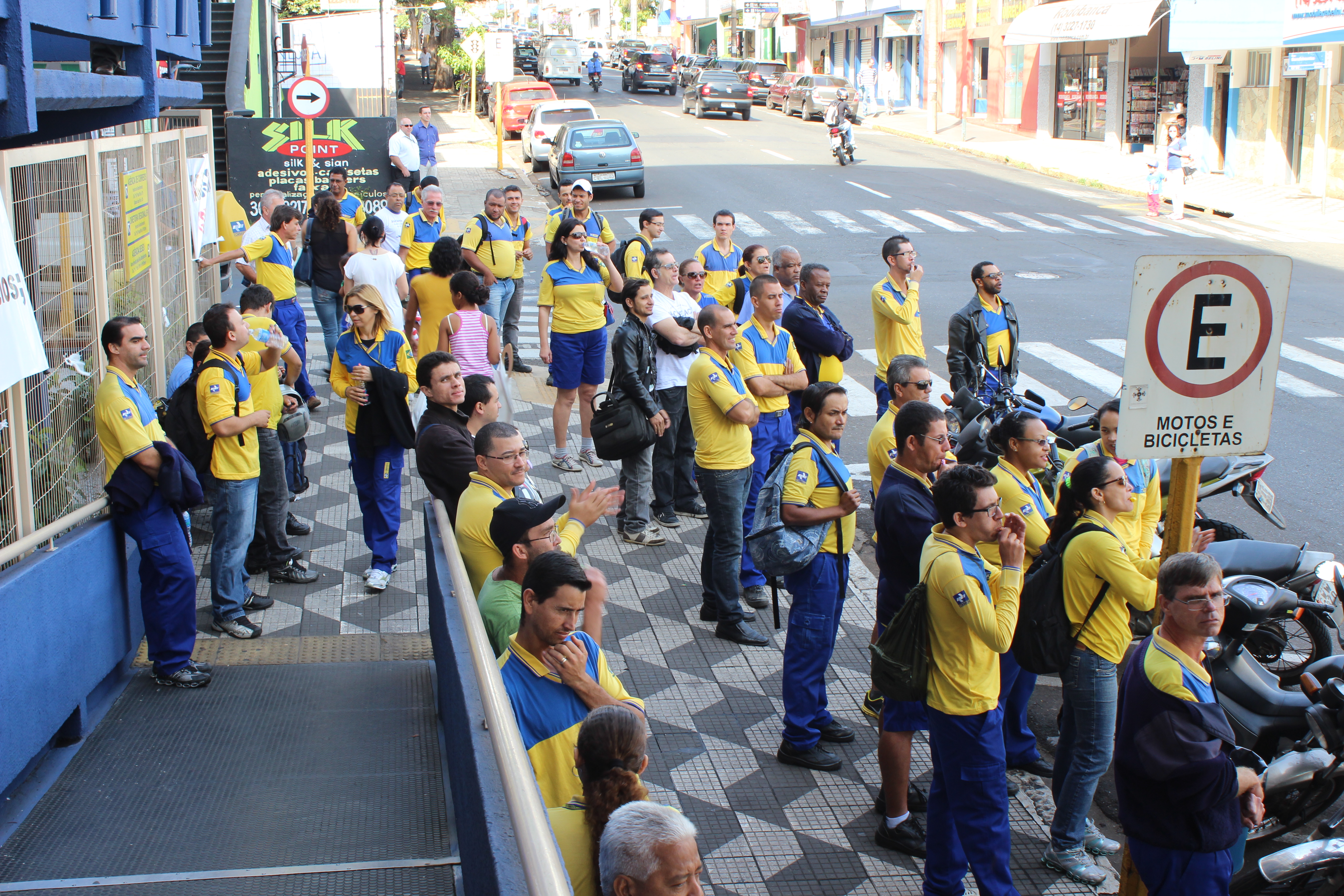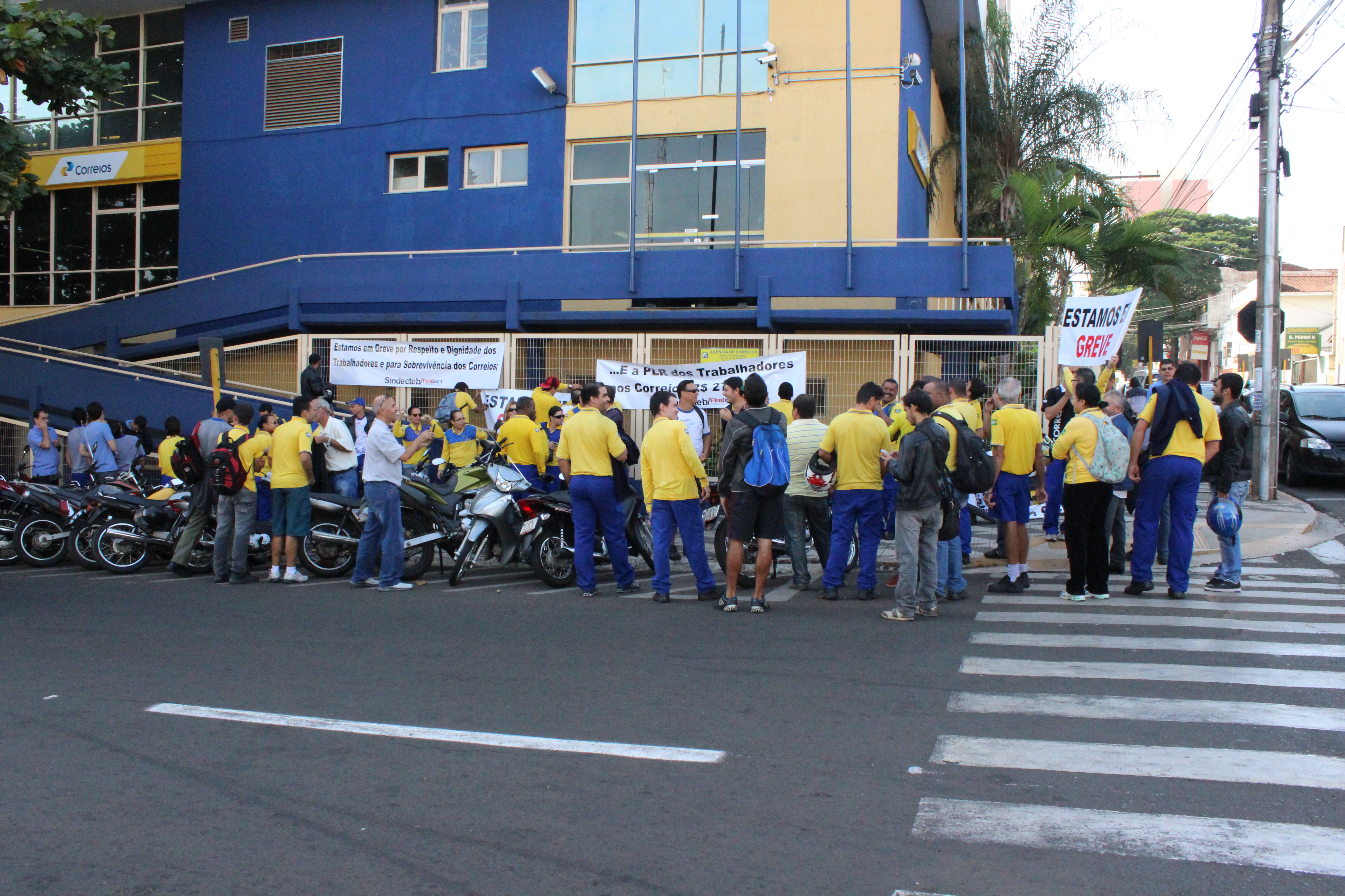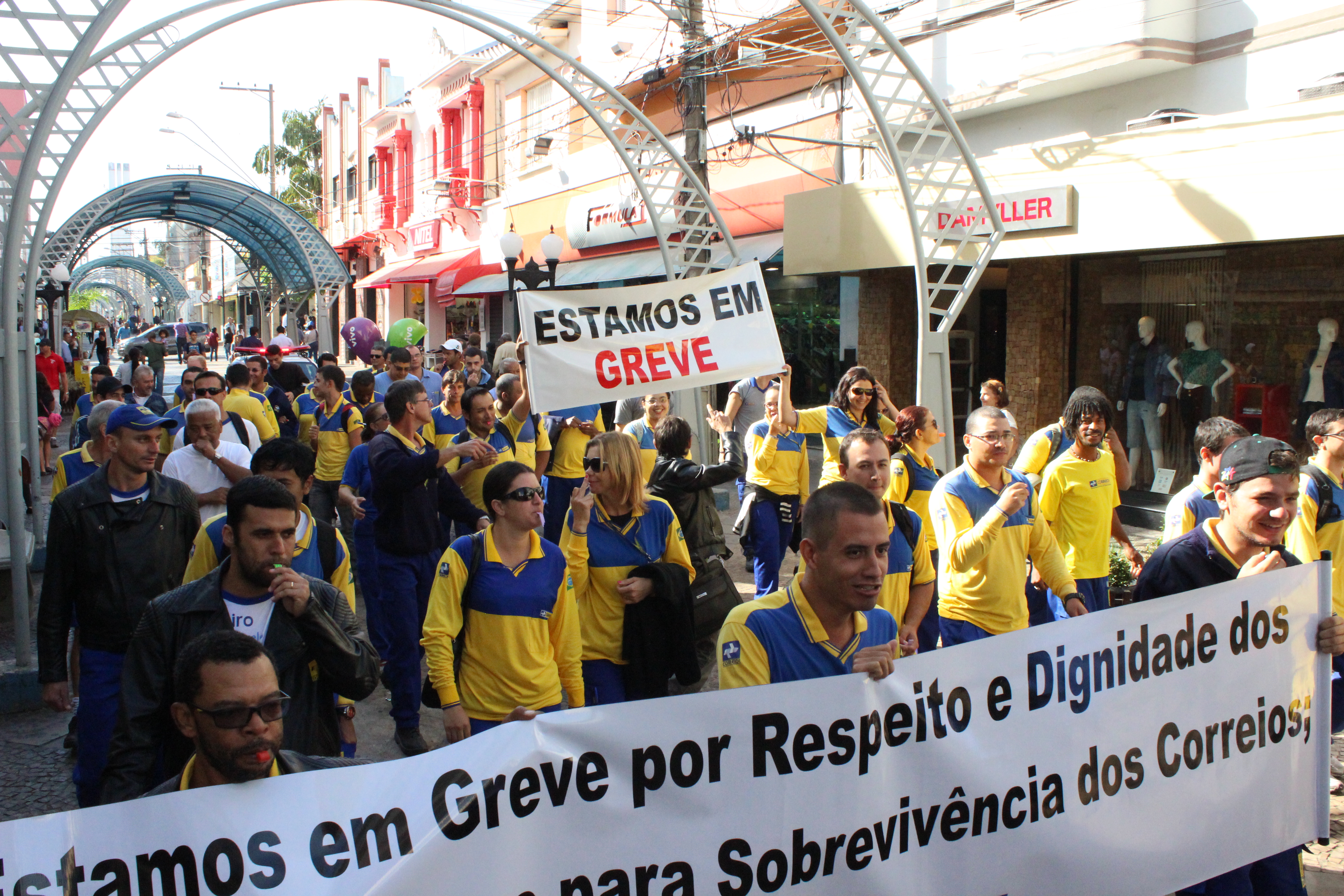 Durante essa manhã, uma passeata com a presença massiva dos trabalhadores, percorreu o calçadão da Batista de Carvalho, saindo da Praça Rui Barbosa e terminando em frente ao prédio da Diretoria Regional dos Correios de Bauru.