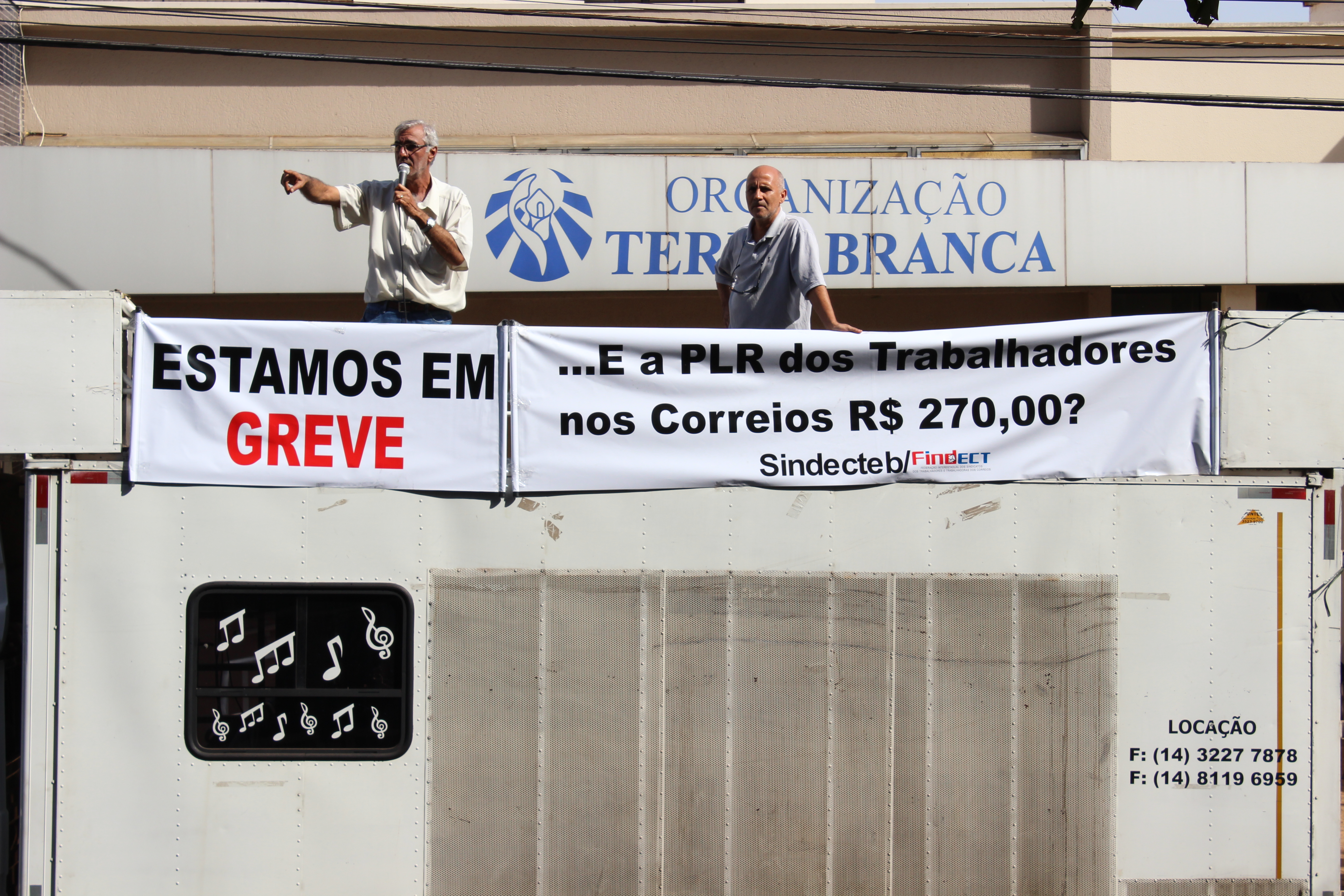 Às 11h30 de hoje, um carro de som, estacionado em frente à Diretoria Regional dos Correios, na Praça Dom Pedro II, em Bauru, chamou os companheiros para a luta, expondo e conscientizando, não só os trabalhadores e trabalhadoras dos Correios, como a comunidade, das mazelas que tem pautado a gestão da Empresa