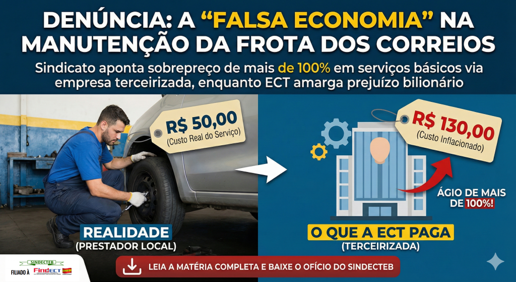 Enquanto a direção da ECT utiliza o prejuízo bilionário de 2025 para justificar cortes, Sindicato revela que a empresa pode estar pagando até o dobro por serviços básicos de manutenção veicular através de intermediárias.